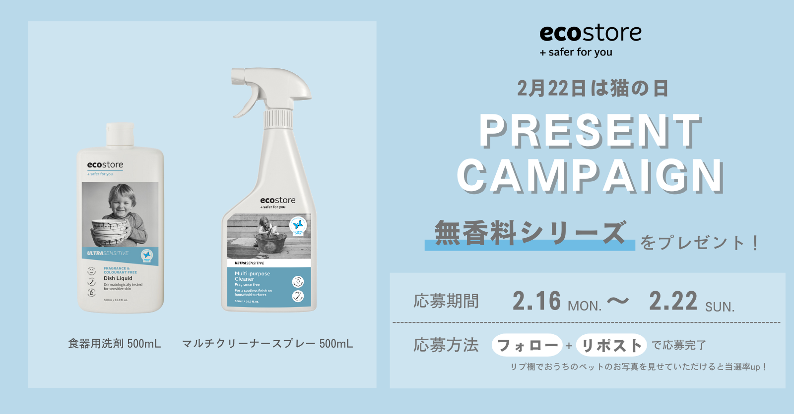 \ 猫の日 プレゼントキャンペーン / 無香料シリーズを22名様にプレゼント! プレゼントキャンペーン詳細 株式会社ecostore JAPAN(以下、当社といいます)が主催する「Instagram、Xキャンペーン」(以…